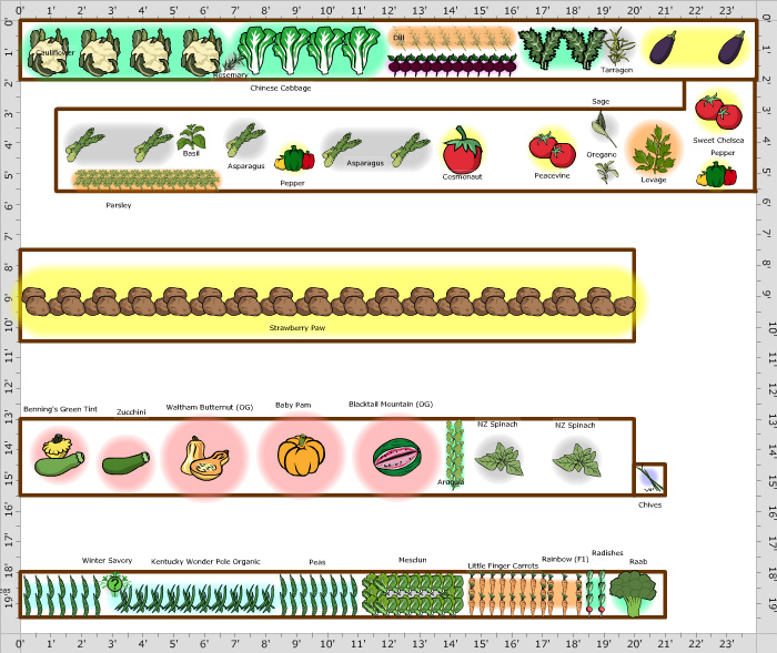 | | Plant | Number | Spacing | Spacing in Rows | Notes |